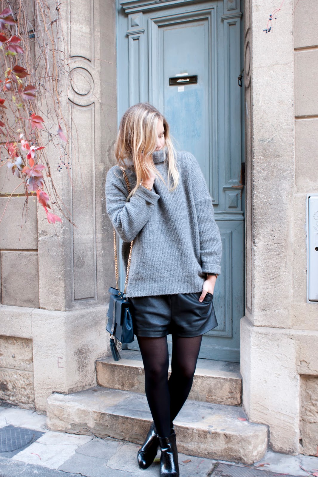 24 novembre 2015 at 17 h 02 minJe suis totalement fan de ce look ! Il est hyper canon, le pull est très beau et ton short en cuir à vraiment l'air terrible 😉