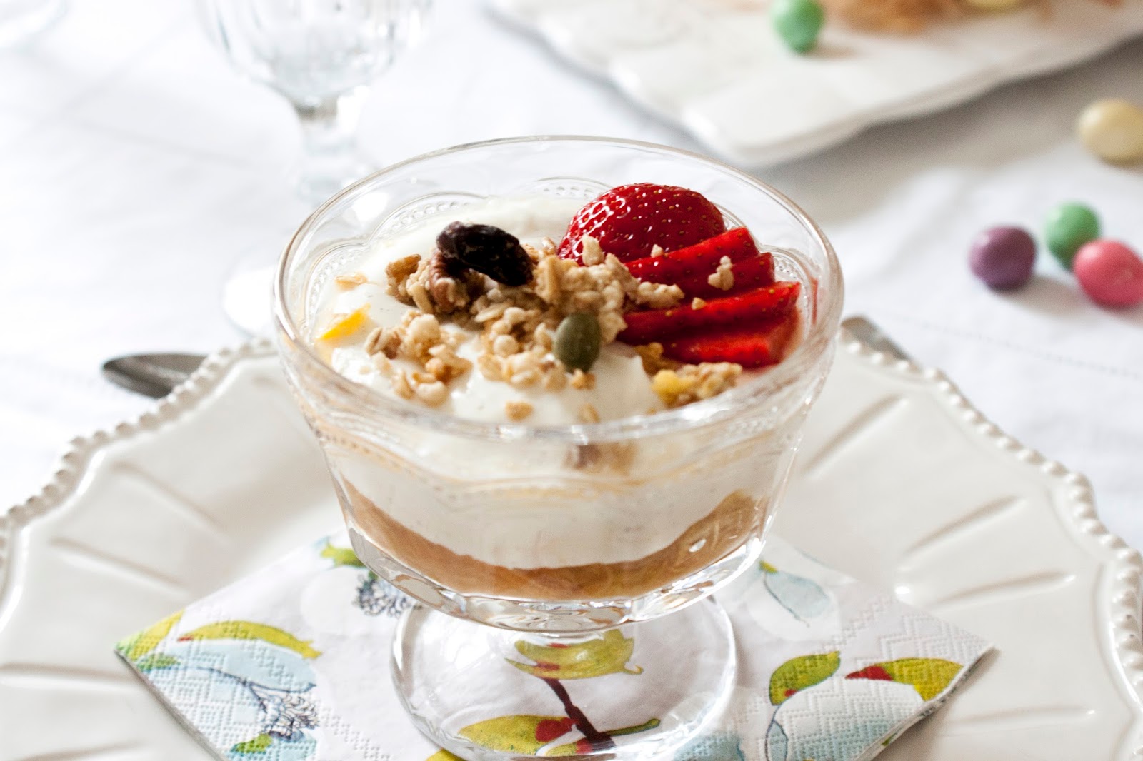 Décorez d’un peu de muesli ou de spéculos émietté et quelques fraises!