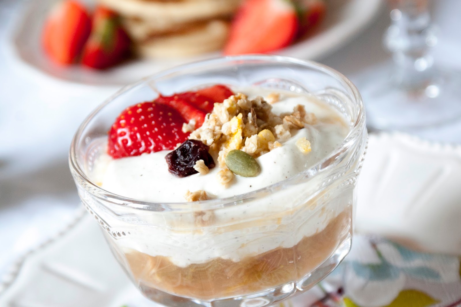 Donc c’est parti on commence avec la recette de cette petite verrine fromage blanc vanille et compotée de rhubarbe (pour 6 portions) :