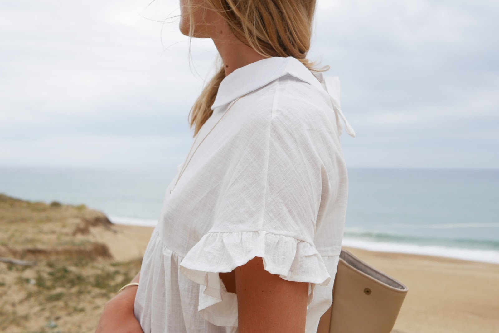 Je tiens d’avance à m’excuser pour l’état de mes cheveux sur ces photos… J’avais oublié mon shampoing et avais donc du les laver avec du savon de Marseille ce qui les a rendu assez “cartonneux” et puis le vent et le sable n’ont pas arrangé la chose !