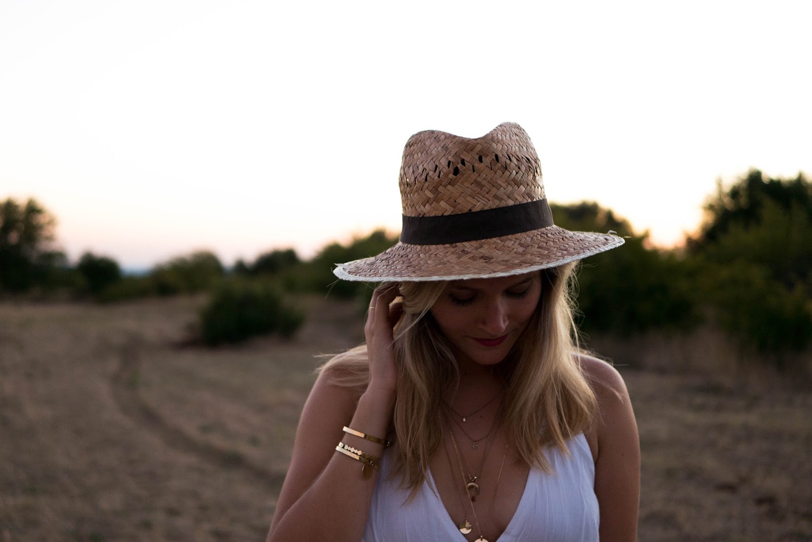 Robe dos nu et chapeau de paille