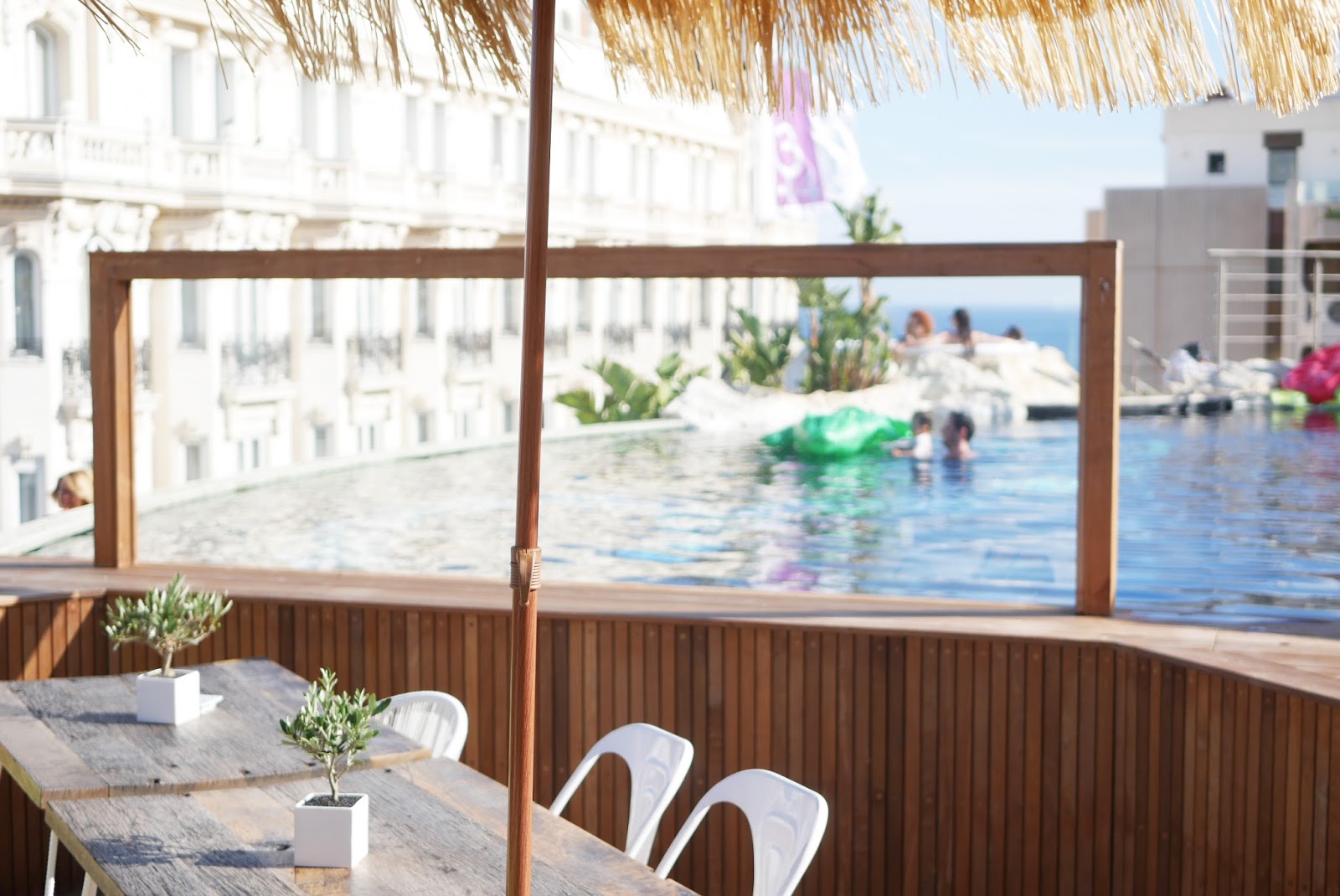 Sur le toit vous pourrez donc retrouver une piscine, un jaccuzi, des transats, un super bar a coktails et depuis peu un bar à tapas (auquel je n’ai pas pu gouter malheureusement mais je suis absolument sure qu’il est tout aussi bon que le resto qui était en bas auparavant).