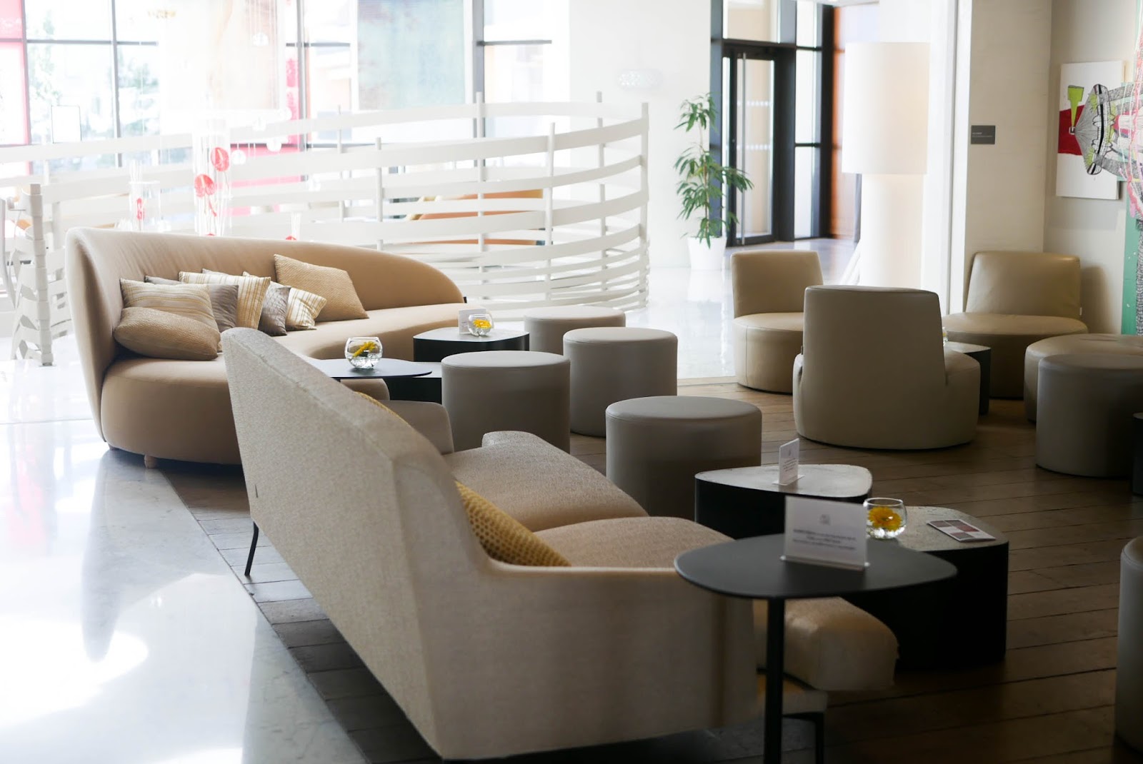 Ensuite, en descendant, vous vous retrouverez dans une grande pièce là aussi très cosy avec des fauteuils suspendus et des méridiennes que j’ai trouvés hyper sympa ! En bas se trouve également plusieurs salles de séminaires et conférences (700 m² réparti en 7 salles modulables précisément) et surtout un espace spa et bien-être possédant une piscine intérieure chauffée, un hammam, une salle de sport et des salles de soins et massages. Le Spa by YMALIA propose notamment des soins bio, mais propose aussi aux clients des séances de sophrologie, les dernières techniques de modelage facial et des soins s’appuyant sur la biotechnologie marine.