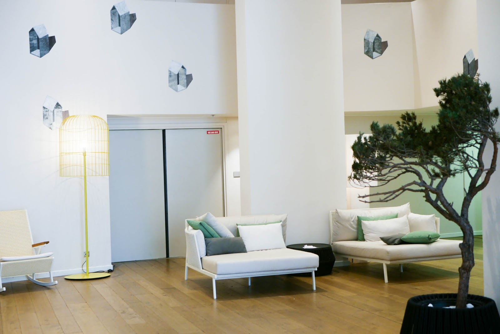 Derrière l’escalier vous trouverez un petit espace co-working très design que je trouve personnellement super cosy !
