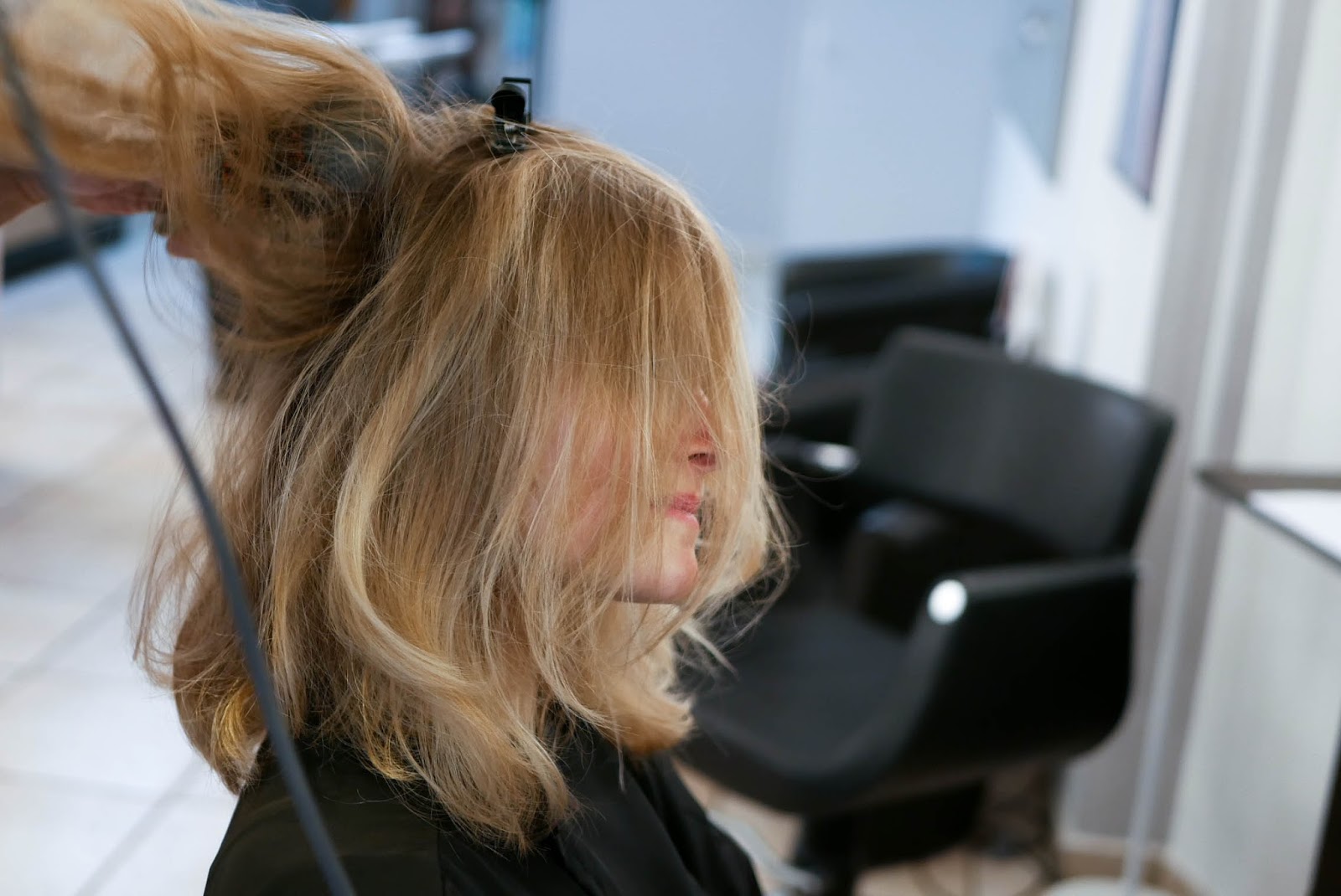 Après il m’a séché les cheveux et on est passé a l’étape décoloration.