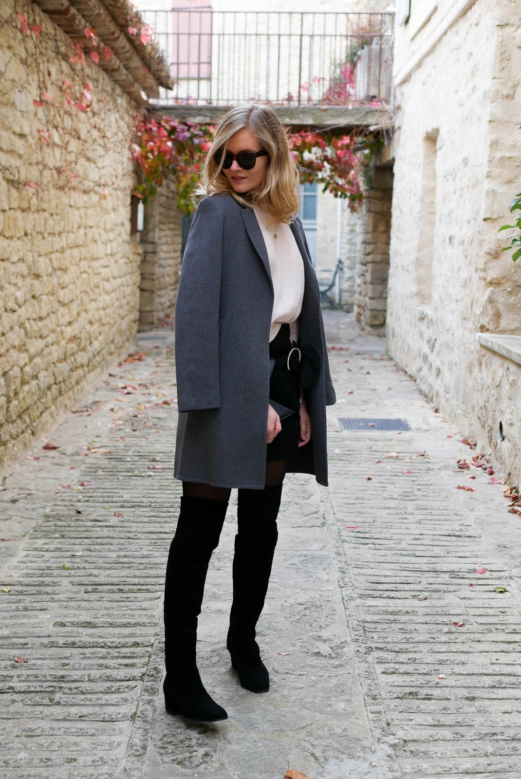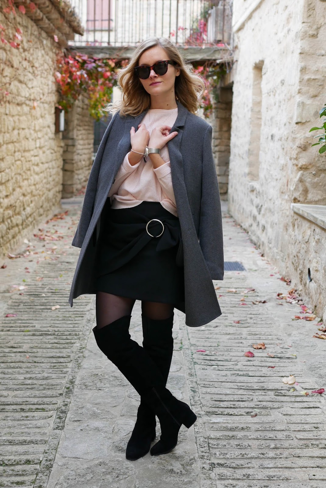 Le sac que je porte provient de chez Elleme, je l’ai depuis un petit moment mais je dois dire que je le mets toujours autant. Mais la grosse nouvelle pièce pour moi c’est ces cuissardes, mes premières !! Ce sont des Jonak et elles sont juste HYPER confortables ! Vraiment, moi qui ne porte jamais de talons je n’ai vraiment pas l’impression qu’elles en ont tellement on est bien dedans. J’avoue je les trouve parfaites… elles sont ni trop serrées ni trop lâches et j’aime tout particulièrement le haut de la cuissardes ouvert à l’arrière.