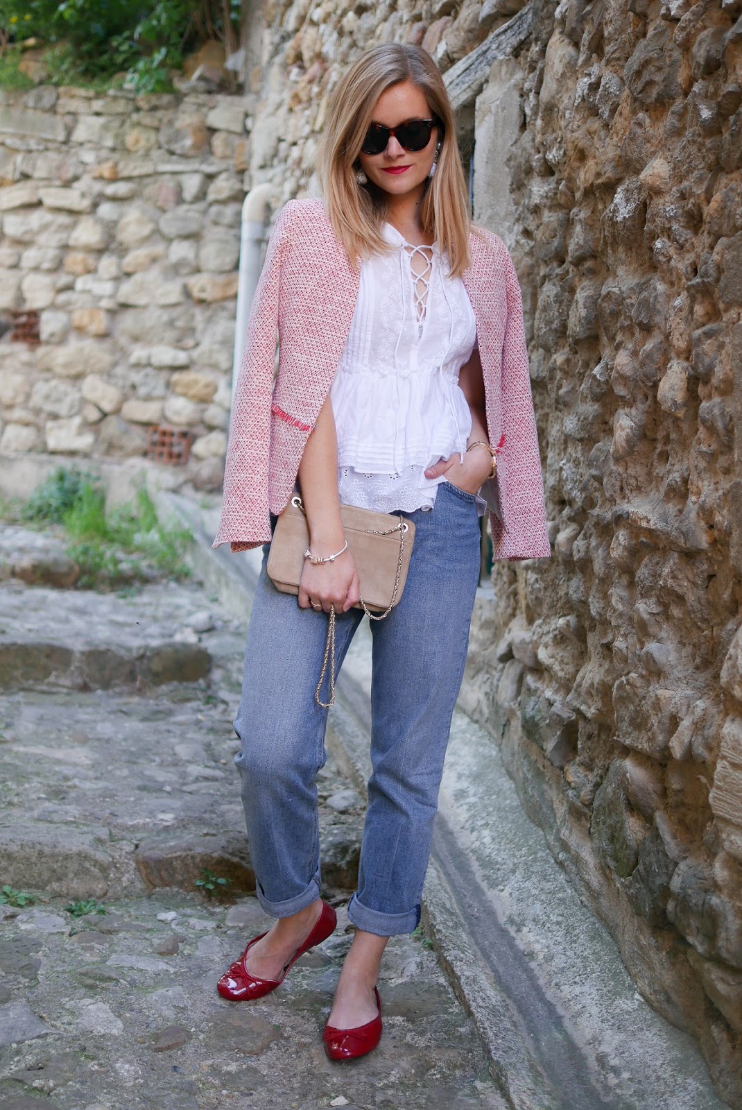 Le combo rouge-jeans est un combo que j’apprécie énormément et même si je suis loin d’être une folle de ballerines j’adore les ballerines rouges et vernies qui font très classes selon moi.
