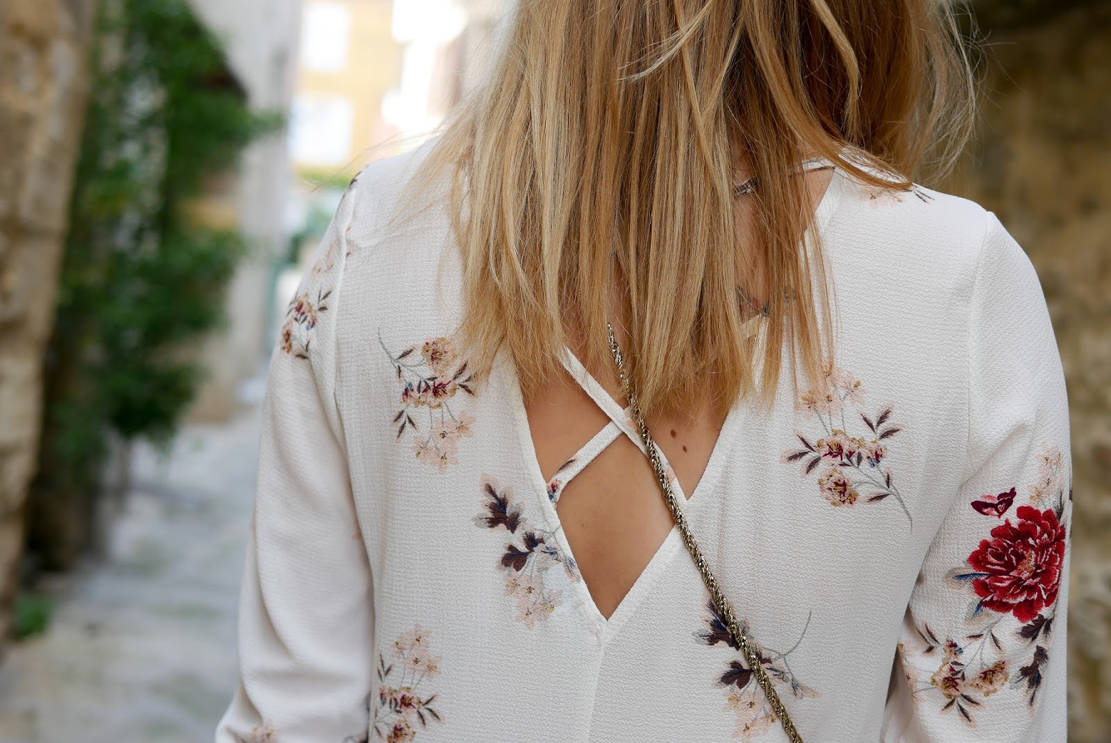 Aujourd’hui je viens vous montrer cette petite robe PARFAITE ! Parfaite de part ses jolis motifs fleuris, de part de sa matière légère, de part sa coupe avec le bas évasé, de part son dos juste SUBLIME et aussi et surtout de part son prix !